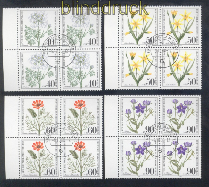 Berlin Mi # 629/32 gestempelte 4er-Blöcke Wohlfahrt 1980 Kräuter (50352)