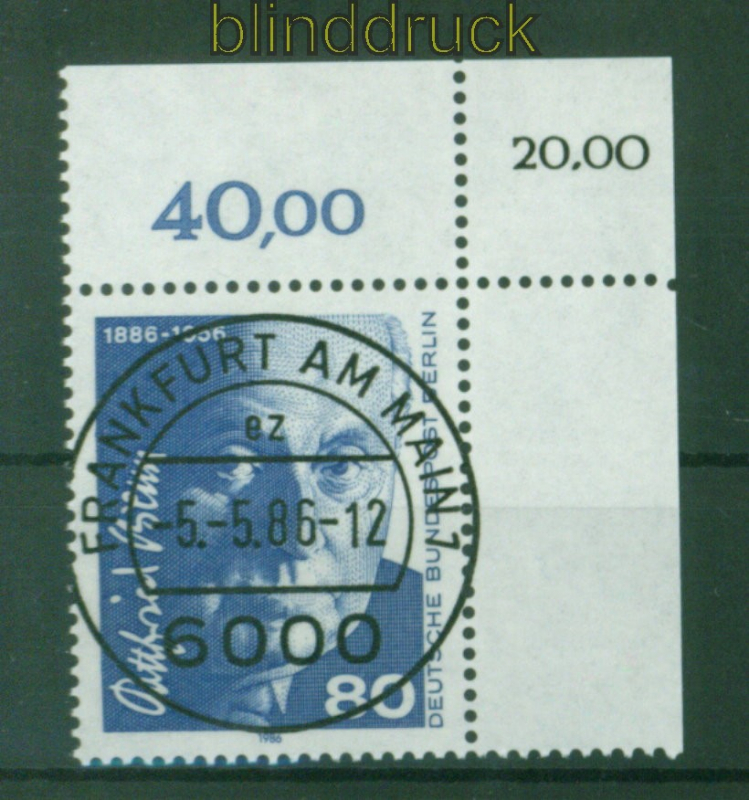 Berlin Mi # 760 gestempelt KBWZ 80 Pfg. 100. Geburtstag Gottfried Benn 80 Pfennig 100. Geburtstag von Gottfried Benn gestempelt mit korrigierten Bogenwertzähler KBWZ Frankfurt Erhaltung siehe Scan
