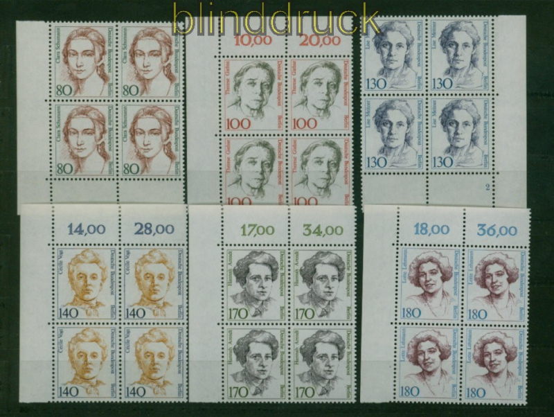 Berlin Mi # 770/849 postfrisch Frauen 4er-Blöcke vom Eckrand Frauen der Deutschen Geschichte komplette Ausgabe in postfrischen 4er-Blöcken meist vom Oberrand oben links oder rechts Erhaltung siehe Scan