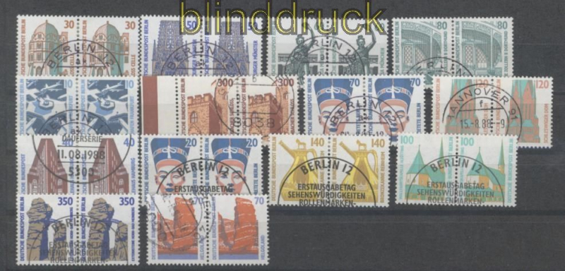 Berlin Mi # 793/874 Sehenswürdigkeiten komplett als waagerechte Paare gestempelt Freimarken: Sehenswürdigkeiten SWK komplette Ausgabe waagerechte Paare gestempelt Erhaltung siehe Scan