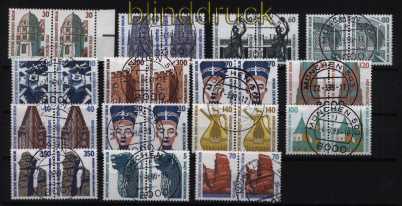 Berlin Mi # 793/874 Sehenswürdigkeiten komplett als waagerechte Paare gestempelt Freimarken: Sehenswürdigkeiten SWK komplette Ausgabe waagerechte Paare gestempelt Erhaltung siehe Scan