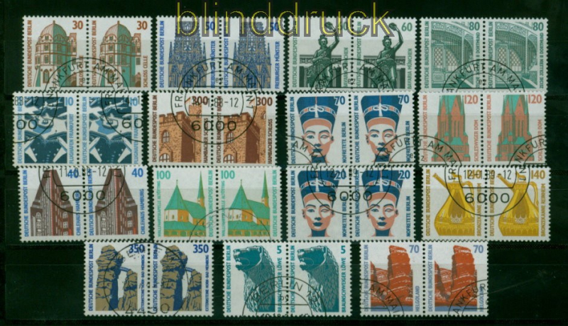 Berlin Mi # 793/874 Sehenswürdigkeiten komplett als waagerechte Paare gestempelt Freimarken: Sehenswürdigkeiten SWK komplette Ausgabe waagerechte Paare gestempelt Erhaltung siehe Scan