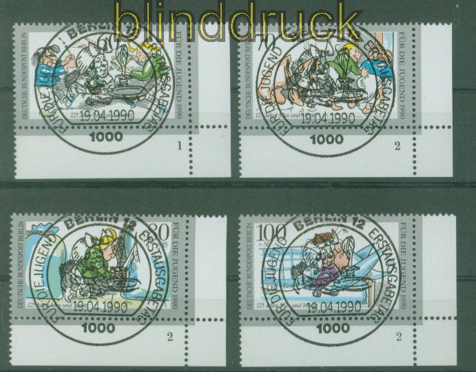 Berlin Mi # 868/71 Sonderstempel Eckrand mit Formnummern Max und Moritz Jugend 1990: Max und Moritz Eckrand unten rechts mit Formnummern Sonderstempel gute Erhaltung siehe Scan