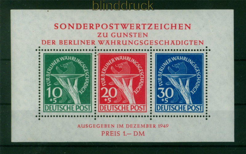 Berlin Mi # Block 1 postfrisch Währungsgeschädigtenblock gepr. Schlegel BPP Währungsgeschädigtenblock postfrisch geprüft Schlegel BPP Erhaltung siehe Scan