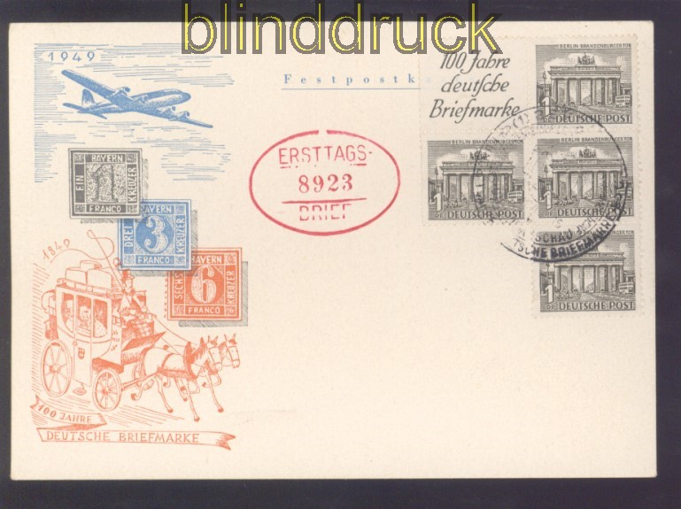 Berlin Zusammendruck S 1 oder W 1 auf Ersttagsbrief FDC Reklamefeld 100 Jahre Deutsche Briefmarken als senkrechter oder waagerechter Zusammendruck Berliner Bauten auf Ersttagsbrief FDC mit Sonderstempel S 1 als FDC im Spezial nicht bewertet Karte mit kleinem Eckbug Erhaltung siehe Scan