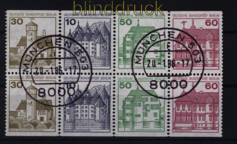 Berlin Zusammendrucke Burgen und Schlösser H.-Bl. 20 gestempelt Heftchenblatt Burgen und Schlösser aus Markenheftchen 12 gestempelt Erhaltung siehe Scan