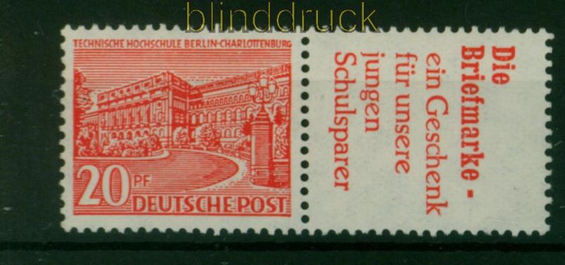 Berlin Zusammendrucke Mi # W 17 postfrisch 20 Pfg. Berliner Bauten mit Reklamefeld: Die Briefmarke - ein Geschenk für unsere jungen Schulsparer waagerechter Zusammendruck postfrisch Erhaltung siehe Scan