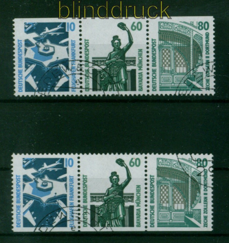 Berlin Zusammendrucke Sehenswürdigkeiten SWK Mi # W 91 und W 92 gestempelt Zusammendrucke Sehenswürdigkeiten SWK zwei waagrechte Zusammendruckde 10, 60 und 80 oben und unten geschnitten gestempelt hoher Katalogwert einwandfreie Erhaltung siehe Scan