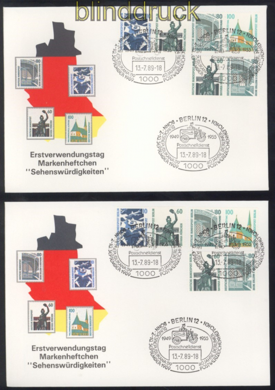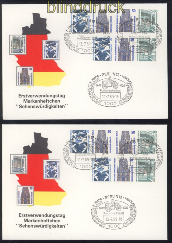 Berlin Zusammendrucke Sehenswürdigkeiten komplett auf FDC Ersttagsbriefen Freimarken: Sehenswürdigkeiten SWK komplette Zusammendruckgarnitur auf 6 Ersttagsbriefen FDC illustriert und mit Sonderstempel nicht adressiert werden als FDC kaum angeboten hoher Katalogwert für gestempelt von 650,00 Euro Erhaltung siehe Scan