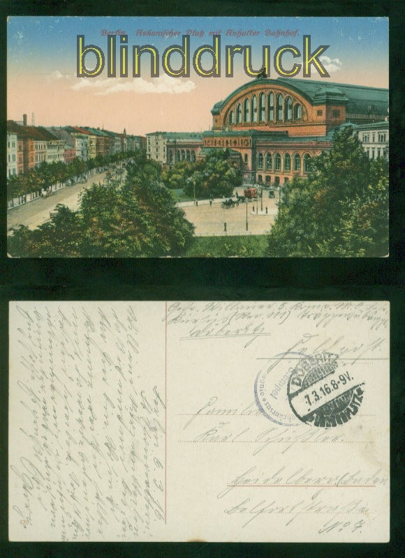 Berlin farb-AK Askanischer Platz mit Anhalterbahnhof Feldpost 1916 (d8901)