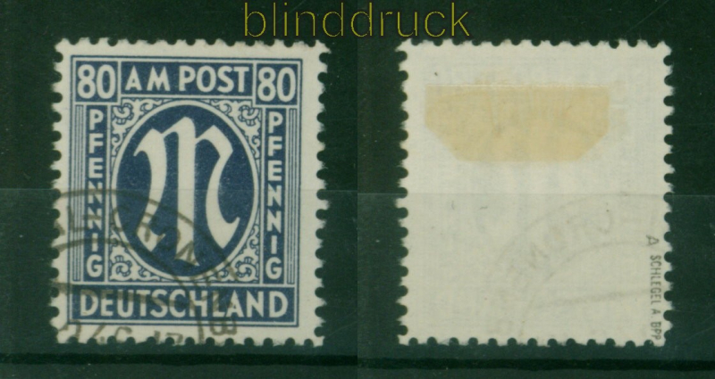 Alliierte Besetzung Bi-Zone AM-Post Mi # 34 a A gestempelt geprüft A. Schlegel BPP 80 Pfg. AM-Post deutscher Druck A-Zähnung gestempelt geprüft A. Schlegel BPP Erhaltung siehe Scan