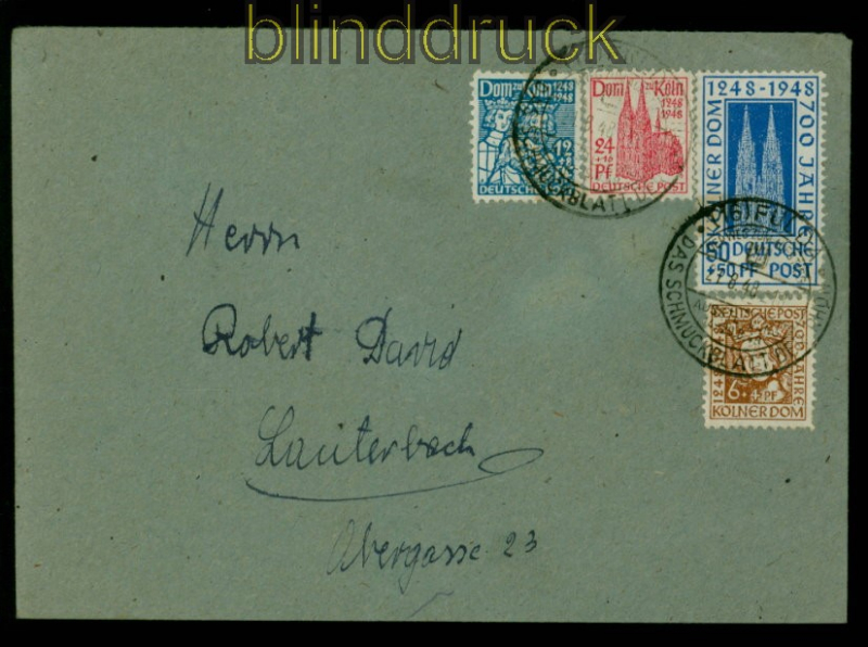 Bi-Zone Mi # 69/72 Kölner Dom Satz-Brief Sonderstempel Fulda 700 Jahre Kölner Dom auf Satz-Brief mit Sonderstempel Fulda gelaufen aus Fulda 21.8.1948 nach Lauterbach Erhaltung siehe Scan