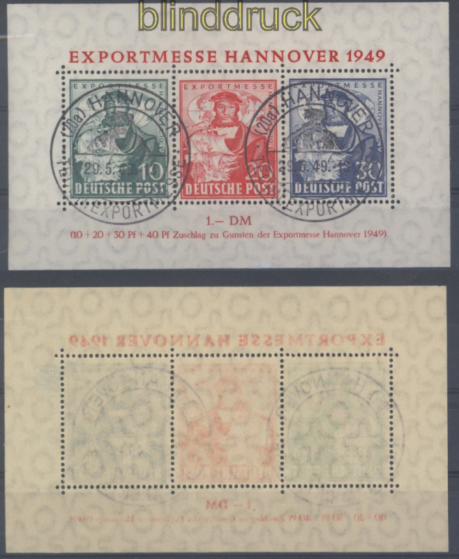 Alliierte Besetzung Bi-Zone Mi # Block 1 a Messeblock Hannover Messe-Sonderstempel SSt. Hannover Messeblock Messe-Sonderstempel Erhaltung siehe Scan
