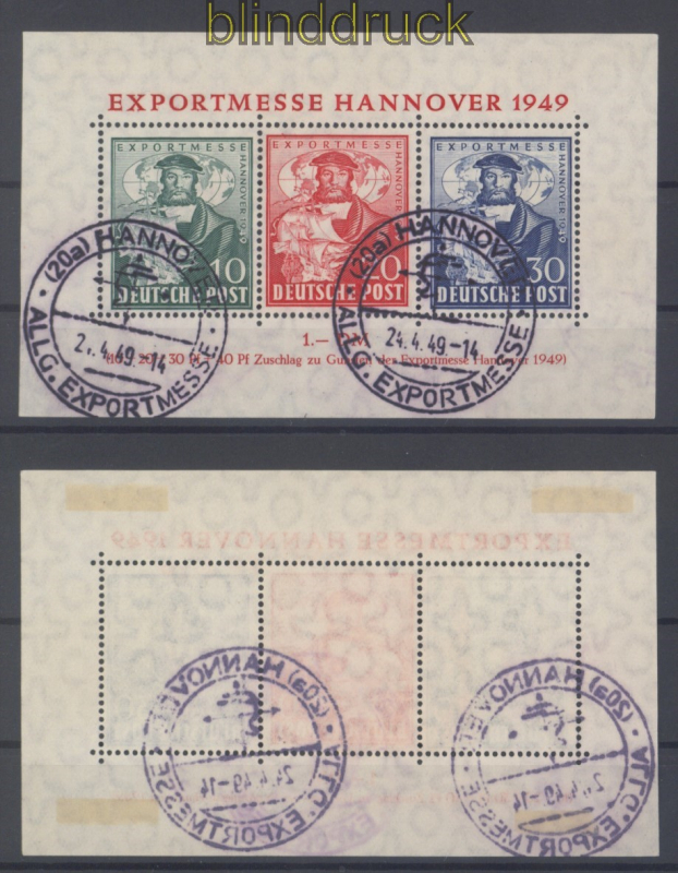 Alliierte Besetzung Bi-Zone Mi # Block 1 a Messeblock Messe-Sonderstempel Hannover Messeblock Messe-Sonderstempel Erhaltung siehe Scan