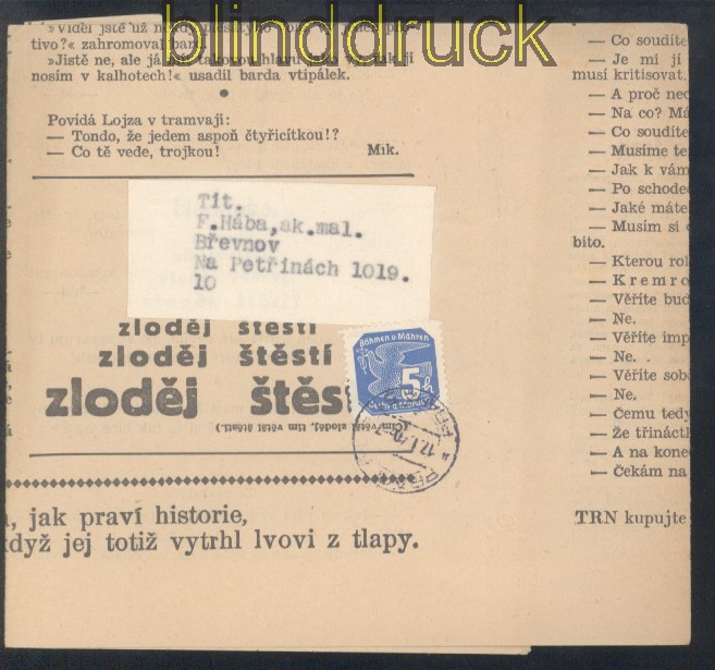 Böhmen und Mähren Mi # 43 EF Zeitungsmarke auf kompletten Streifband mit Privatzähnung schöne Einzelfrankatur EF auf kompletten Striefband hergestellt aus einer alten Zeitung Marke wurde mit einer Privatzähnung versehen ein schöner Beleg Erhaltung siehe Scan