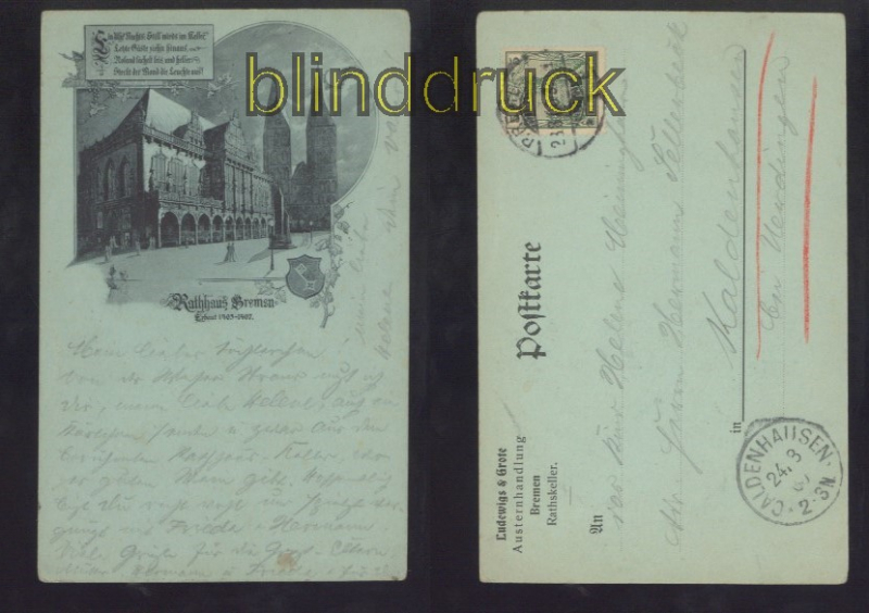 Bremen Mondschein-AK Rathaus Bremen mit Roland 1900 Karte gelaufen aus Bremen 23.8.1900 nach Caldenhausen bei Uerdingen Erhaltung siehe Scan