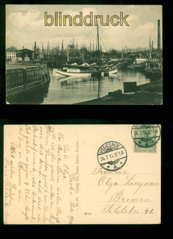 Bremen Vegesack sw-AK Hafen 1915 nach Bremen Karte gelaufen aus Vegesack 24.7.1915 nach Bremen Verlag Heinrich Künne, Bremen Erhaltung siehe Scan