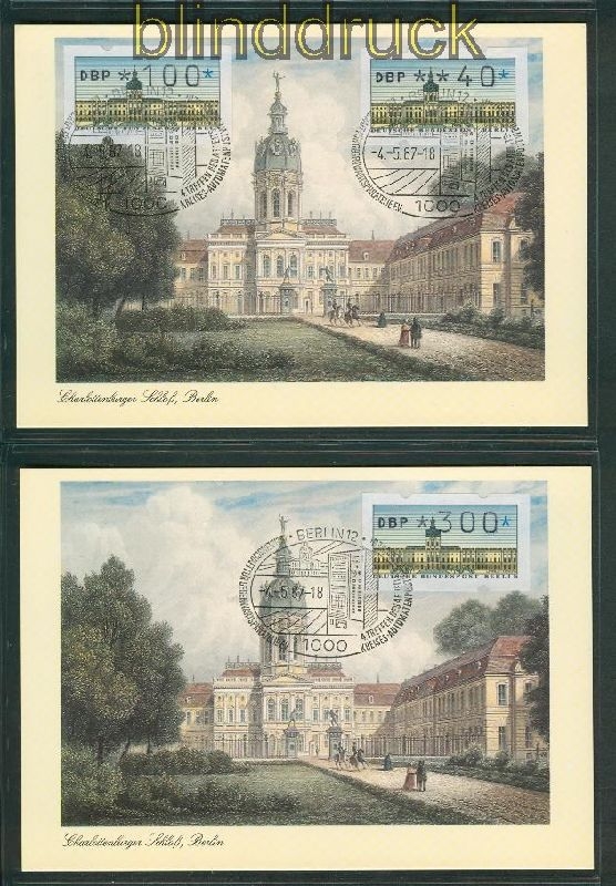 Berlin ATM Mi # 1 Tastensatz 1 Ersstags-Sonderstempel auf Maximumkarten Automatenmarke Schloss Charlottenburg Tastensatz 1 komplette Ausgabe mit Ersttags-Sonderstempel auf 11 Maximumkarten vom Ersttag Erhaltung siehe Scan
