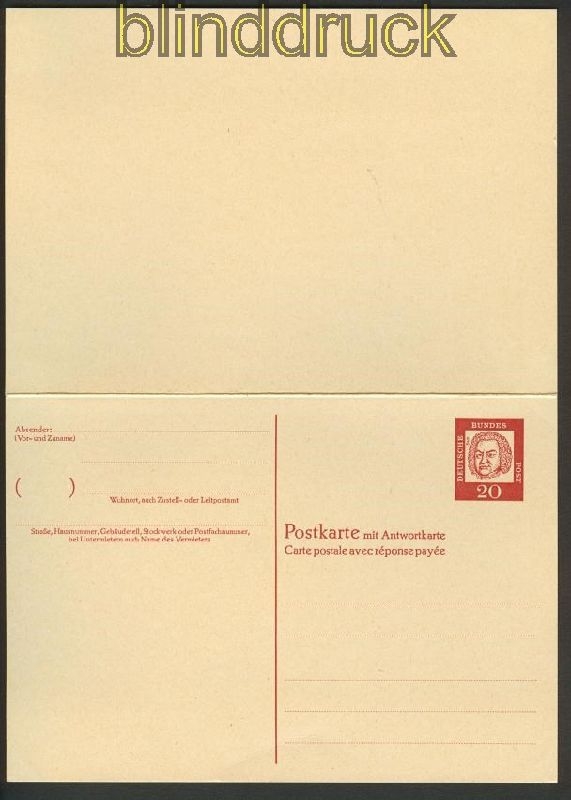 Bundesrepublik Ganzsachenkarte GSK P 64 20 Pfennig Bedeutende Deutsche Doppelkarte ungebraucht Katalogwert: 20,00 Euro eiwandfreie Erhaltung siehe Scan
