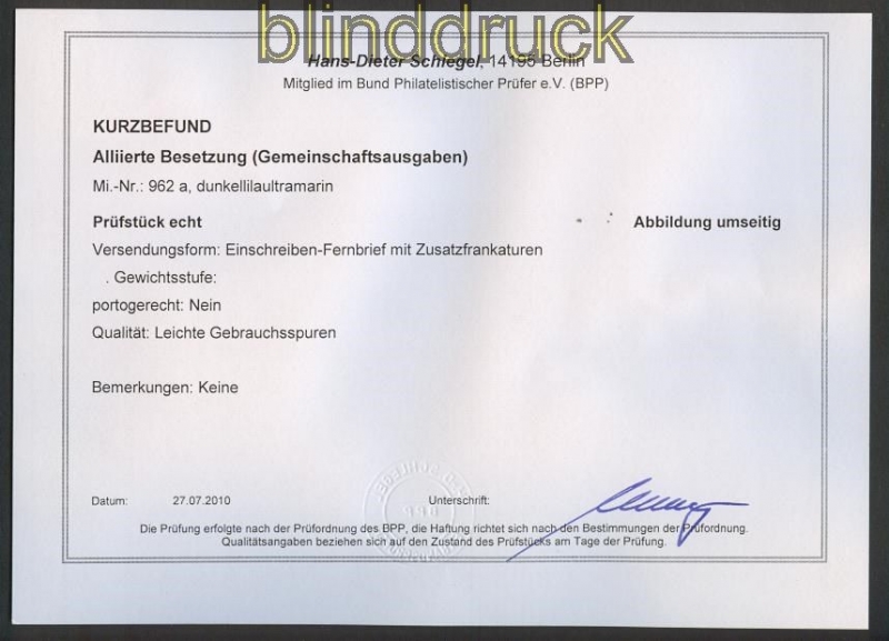 Alliirte Besetzung Mi # 962 a R-Fern-Brief gepr. Schlegel BPP 5 Mark Taube mit Zusatzfrankatur auf Einschreibebrief aus Karlsruhe 8.3.1948 nach Konstranz Kurzbefund Schlegel BPP: Einschreiben Fernbrief mit Zusatzfrankaturn nicht portogerecht leichte Gebrauchsspuren Erhaltung siehe Scan