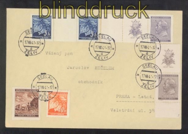 Böhmen und Mähren Mi # 73/74 Zf in MiF Fernbrief Seelau Zeliv 1941 schöne Mehrfachfrankatur auf Fernbrief aus Seelau Zeliv 17.8.1941 nach Prag Erhaltung siehe Scan