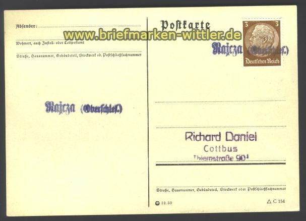 Oberschlesien Notstempel Rajcza Vorlagekarte (15747)