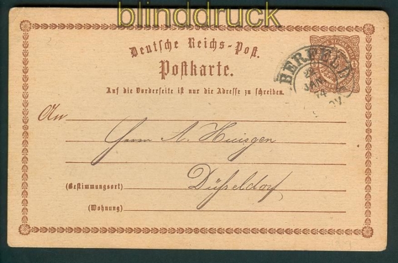 Deutsches Reich dt. Rech Hufeisenstempel Elberfeld GSK Spalink 12-4 Ganzsachenkarte mit Hufeisenstempel Elberfeld Spalink 12-4 Karte gelaufen 22.01.1874 nach Düsseldorf Erhaltung siehe Scan
