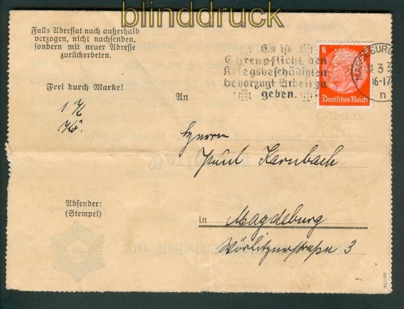 Deutsches Reich Mi # 517 POL-Lochung Magedurg 1936 geprüft portogerecht Vorladung Ortsbrief Magdeburg 31.3.1936 geprüft Veith BPP Erhaltung siehe Scan