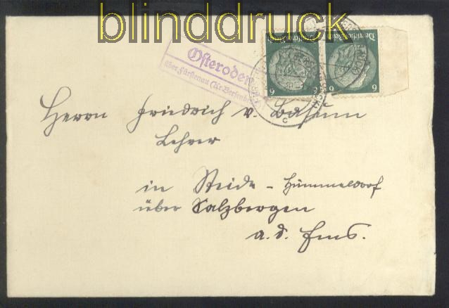dt. Reich Osteroden über Fürstenau Landpoststempel 1940 (46282)