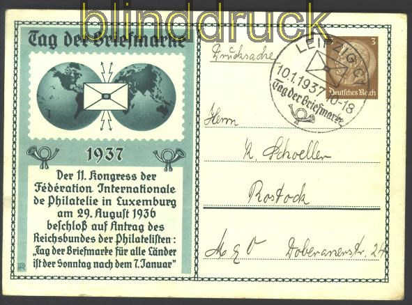 deutsches Reich Privat-Ganzsachenkarte Frech PP 122 C 35/02 Tag der Briefmarke weißer dicker Karton blanko gestempelt mit entsprechendem Sonderstempel SSt. Erhaltung siehe Scan