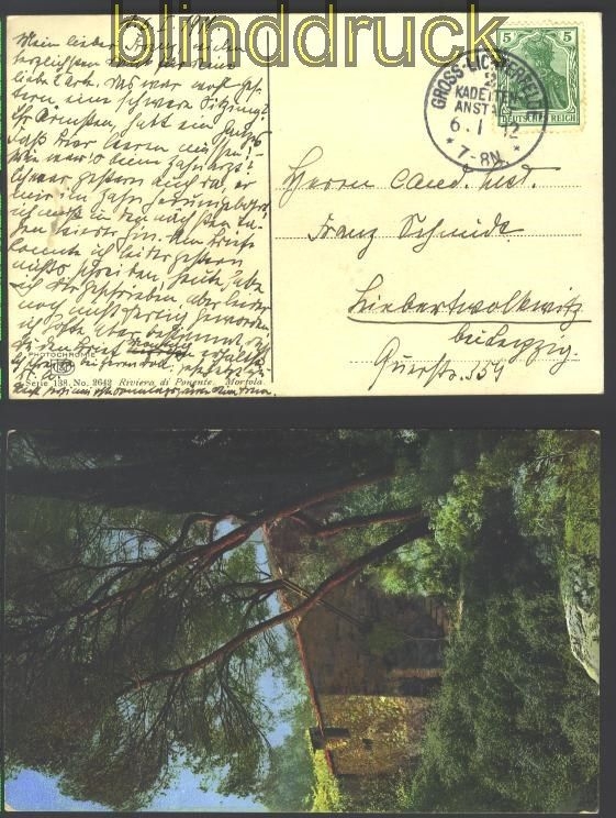 deutsches Reich Berlin Stempel Gross-Lichterfelde 2. Kadetten-Anstalt 6.1.1912 auf farb-AK Erhaltung siehe Scan