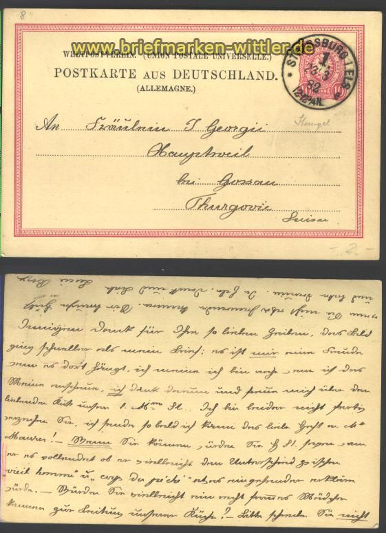 Elsaß Ganzsachenkarte aus Strassburg 23.3.1882 in die Schweiz Erhaltung siehe Scan