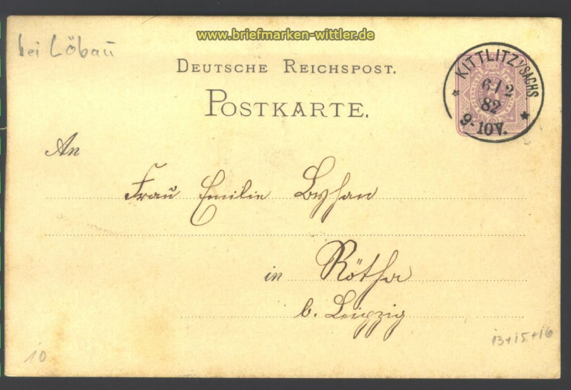 Deutsches Reich alte Ganzsachenkarte aus Kittlitz bei Löbau 6.2.1882 nach Leipzig gute Erhaltung siehe Scan