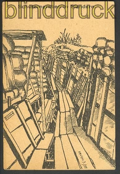 Deutsches Reich Feldpost 1. Weltkrieg sw-AK Schützengraben in Flandern Bleistiftzeichnung von K. Methke 7/181 Karte ungebraucht gute Erhaltung