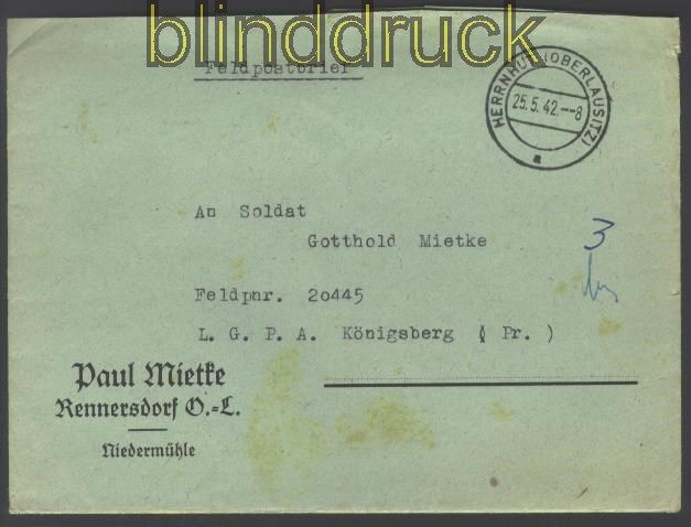 Feldpostbrief # 20445 25.5.1942 Heimat-Front (16484)