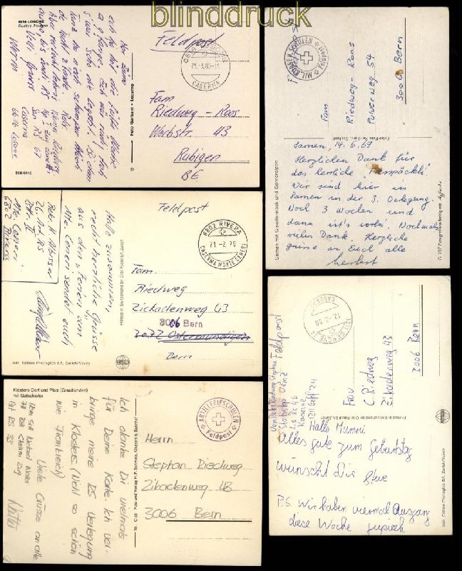 Schweiz 15 Feldpostbelege aus den Jahren 1969 bis 1995 mit z. T. interesaanten Inhalt schien wohl nicht allen zu gefallen Erhaltung siehe Scan