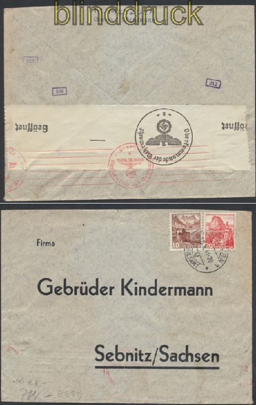 Schweiz Auslands-Zensur-Brief Solothurn 1941 Deutsche Zensur mit deutscher Zensur der Auslandsbriefprüfstelle ABP Frankfurt Brief gelaufen aus Solothurn 28.5.1941 nach Sebnitz diverse Prüfvermerke Erhaltung siehe Scan