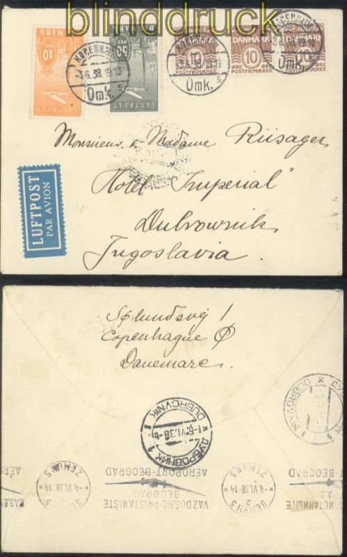 Dänemark Auslands-LuPo-Brief 1938 nach Jugoslawien gelaufen aus Kopenhagen 3.6.1938 nach Jugoslawien Erhaltung siehe Scan