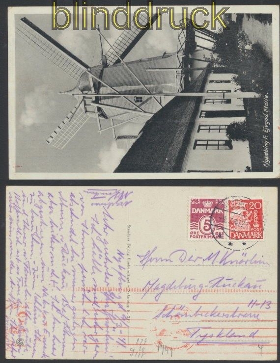 Dänemark Auslands-Zensur-Ansichtskarte Nykobing 1941 schöne Mischfrankatur MiF auf sw-AK: Nykobing F. Rjrgod Molle mit deutscher Zensur der Auslandsbriefprüfstelle ABP Berlin Karte gelaufen aus Nykobing 9.3.1941 nach Magdeburg Erhaltung siehe Scan