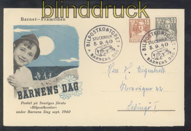 Schweden Mi # 289/80 A Ersttagsbrief FDC SSt. Stockholm 200. Geburtstag von Johan Tobias Sergel komplette Ausgabe auf Schmuckumschlag Barnens Dag mit Sonderstempel Bildpostkontoret Stockholm 5.9.1940 Erhaltung siehe Scan