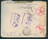 Italien Auslands-Einschreibe-Zensur-Brief Genova 1944 Auslands-Einschreibebrief frankiert mit waagerechtem Paar Mi # 646 mit italienischer und deutscher Doppelzensur mit Prüfstempel Zensurstelle ähnlich Riemer B-14 (ohne Welle) so nicht im Riemer gelistet mehrer deutsche und italinische Zensurvermerke aus Genova 06.10.1944 nach Berlin oben Öffnungsmängel seltener Beleg mit interessanter Zensur!!! Erhaltung siehe Scan