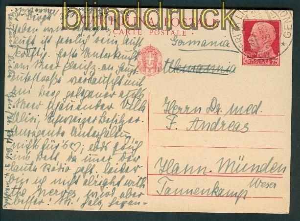 Italien Ganzsachenkarte GSK P 86 gestempelt Auslands-Postkarte Karte gelaufen aus Margherita Ligura 21.3.1939 nach Hannoversch-Münden Erhaltung siehe Scan