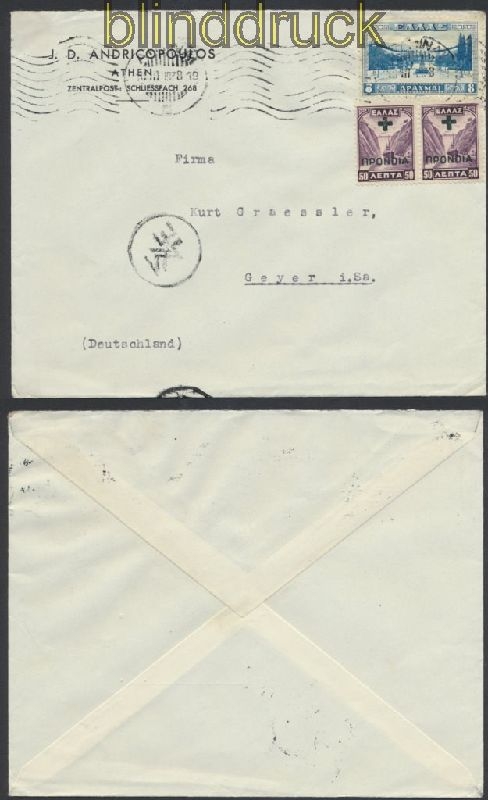 Griechenland Auslands-Zensur-Brief 1938 griechische Zensur nach Geyer (44907)