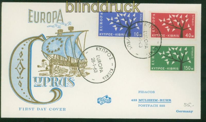 Zypern Mi # 215/17 Ersstagsbrief FDC Europa 1962 (51119)