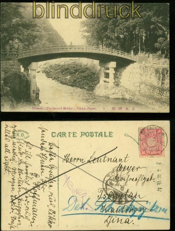 Japan NIKKO sw-AK Mihashi (The Sacred Bridge) 1911 nach Kiautschou (41915)
