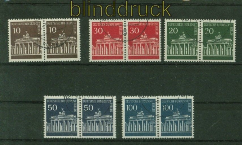 Berlin Mi # 286/90 Brandenburger Tor waagerechte Paare gestempelt Freimarken: Brandenburger Tor komplette Ausgabe waagerechte Paare gestempelt Erhaltung siehe Scan