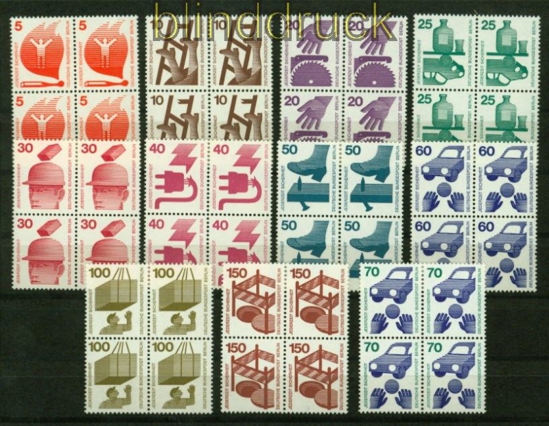 Berlin Mi # 402/11 und 453 Unfallverhütung 4er-Blöcke postfrisch Freimarken: Unfallverhütung komplette Ausgabe 4er-Blöcke postfrisch Erhaltung siehe Scan