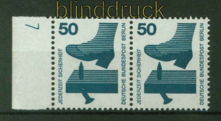 Berlin Mi # 408 waagerechtes Paar mit Druckerzeichen "7" postfrisch 50 Pfg. Unfallverhütung mit Druckerzeichen DZ "7" waagerechtes Paar postfrisch Erhaltung siehe Scan
