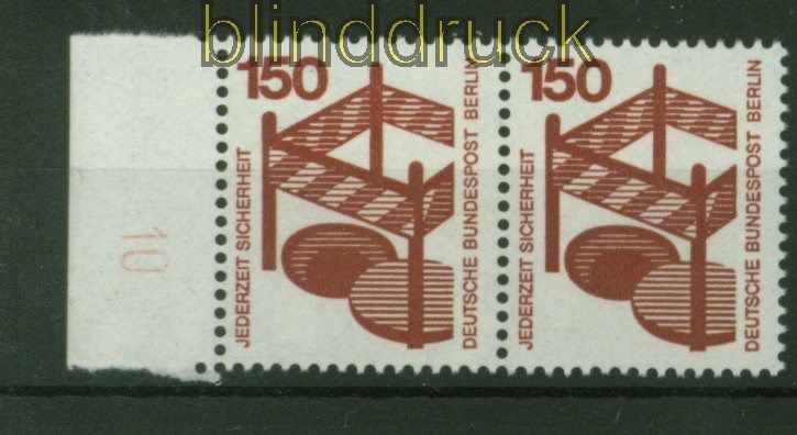 Berlin Mi # 411 waagerechtes Paar mit Druckerzeichen "10" postfrisch 150 Pfg. Unfallverhütung mit Druckerzeichen DZ "10" (schwach) waagerechtes Paar postfrisch Erhaltung siehe Scan