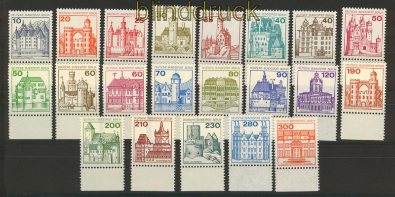 Berlin Mi # 532/677 Burgen & Schlösser komplett vom Unterrand postfrisch komplette Ausgabe Burgen & Schlössereinheitlich als Unterrandmarke einwandfrei postfrisch Erhaltung siehe Scan